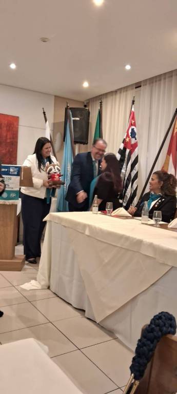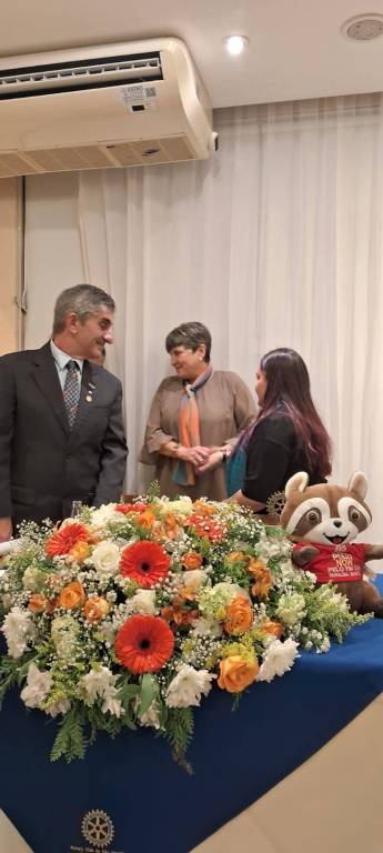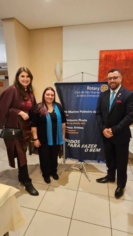 Na noite do dia 31 de julho realizamos a Festiva de Transmissão e Posse do CD 2025-26 nas amplas dependências do Restaurante Terraço em São Vicente com a presença do casal governador Luiz Antonio Pirola e Angelica. Também esteve presente o sempre agradável Governador 2016-17 Ronaldo Varella além das presenças da GA Cassia Gimenes, do Presidente do RC de Cubatão Jardim Casqueiro companheiro Wilson, da presidente do RC de São Vicente Flavia Marcelino, do companheiro do RC de SV Praia Ciro Politi e do companheiro do RCde Santos Bras Cubas Leandro Guedes, a companheiroa Caroline Trevisan do RC de Santos Gonzaga e a Sra. Bruna Maria Lopes representando o prefeito de nossa cidade e muitos amigos de nosso clube e familiares da presidente. Tivemos tb a posse de um novo sócio Luis Eduardo de Oliveira Batista. Uma bela e animada festa ricamente fotografada por nossos sócios