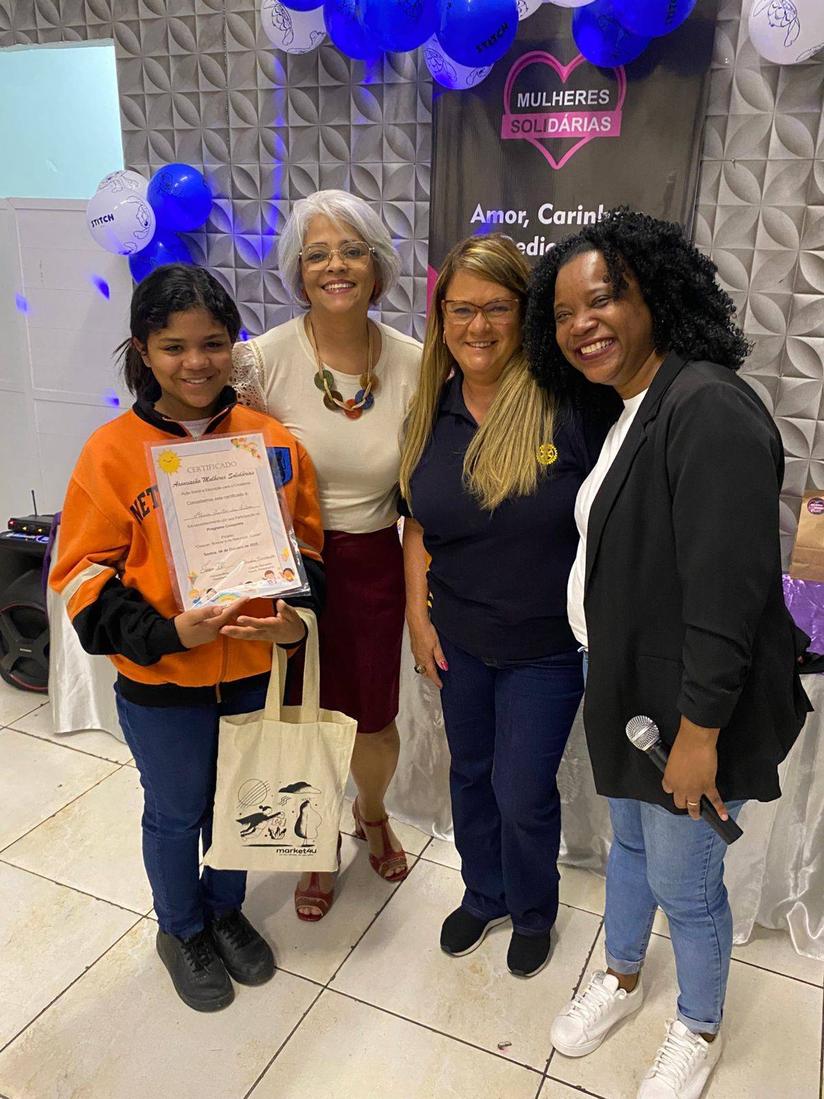 Aconteceu em 04/10/2025 a formatura do Grupo Conquista, projeto apadrinhado pelo RC de Santos-Porto. O grupo é formado por filho de mulheres cadastradas no Projeto Associação Mulheres Solidárias.