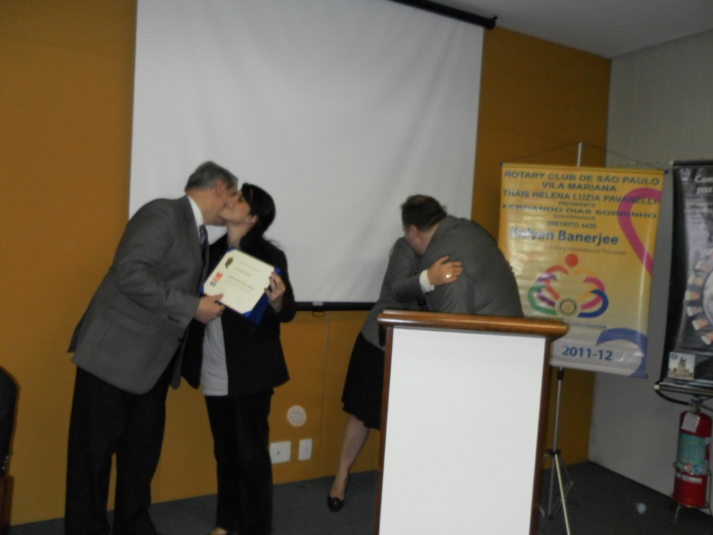 Na foto, o casal com a presidente num momento de entusiasmo e companheirismo vivido junto ao RC SP Vila Mariana.